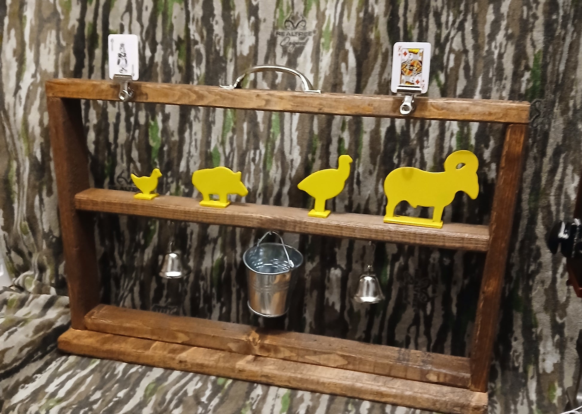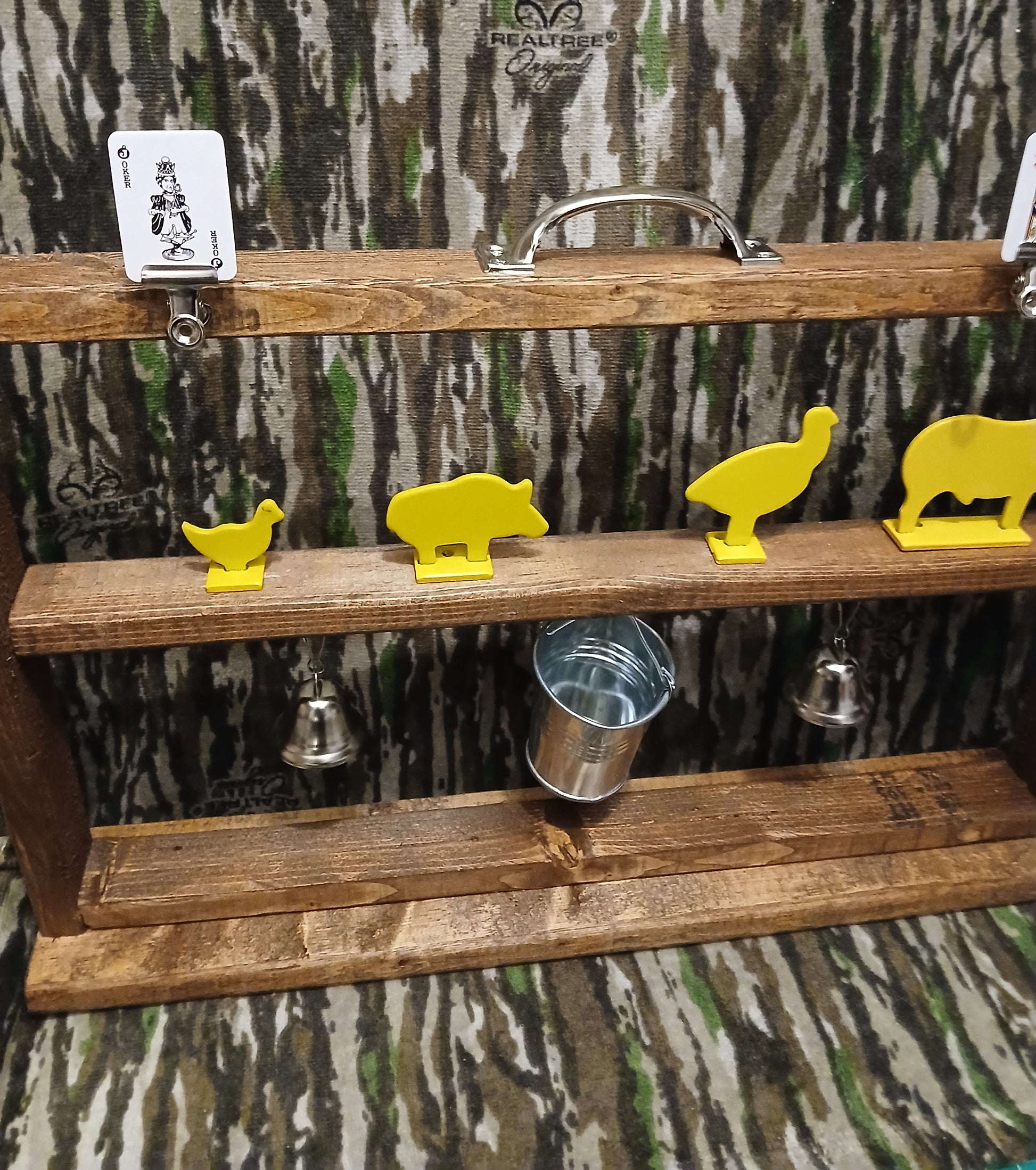 Comes with mini deck of cards, 4 metal silhouettes , 2 bells , 1 metal pal .